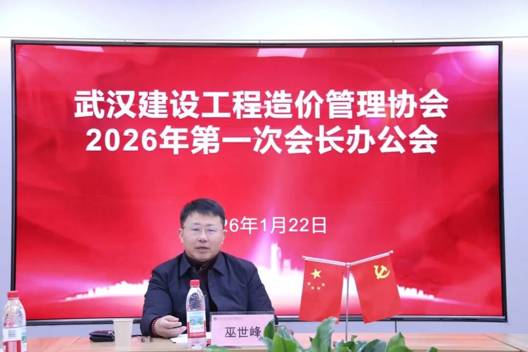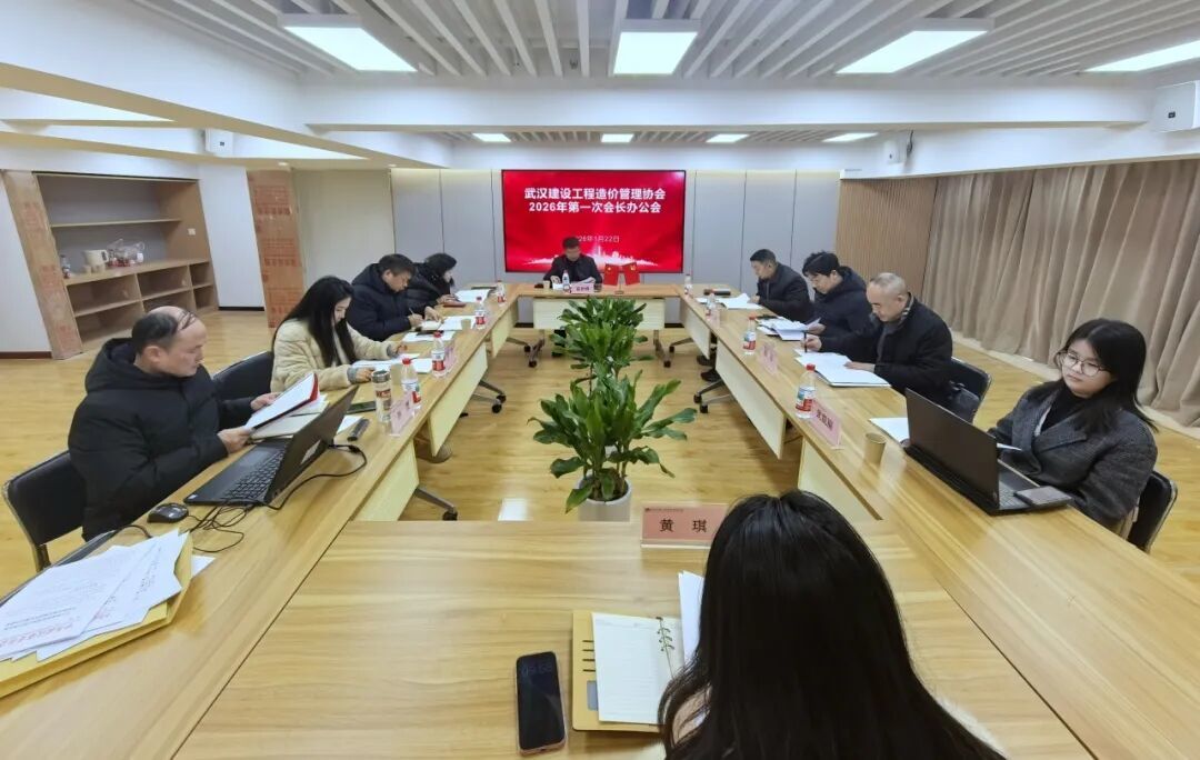 2026年1月22日上午,武汉建设工程造价管理协会第四届理事会2026年第一次会长办公会在协会会议室顺利召开。会长巫世峰,副会长张少兵、黄琼、文云贵、杨朋林(万汉英副会长委托代表),秘书长杨杰,副秘书长黄琪、陈磊,以及协会专家委员会副主任程征、武汉理工大学武凯丽参加会议。本次会议由本季度轮值会长黄琼主持。